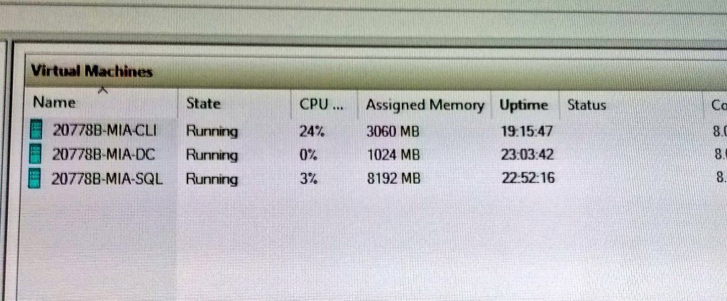 One of these virtual machines is running Microsoft Excel and nothing else; one is running a domain controller; one is running Microsoft SQL Server, Microsoft SharePoint, and Microsoft Power BI Desktop. Guess which is running with 24% CPU?