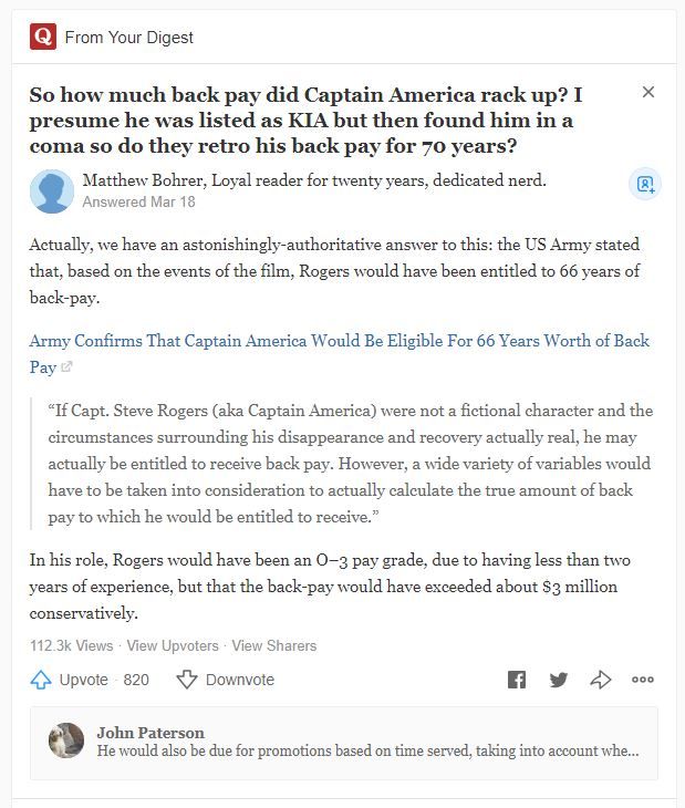 : Quora, answering all of the world's important questions. #CaptainAmerica #Endgame