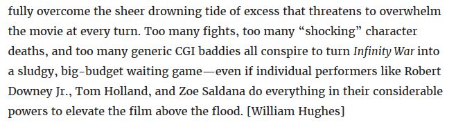 Now that the hype from that film has died down, we can all collectively admit it was bobbins. It makes me very suspicious of the ecstatic reviews that Avengers: Endgame (2019) is getting from the same media outlets.