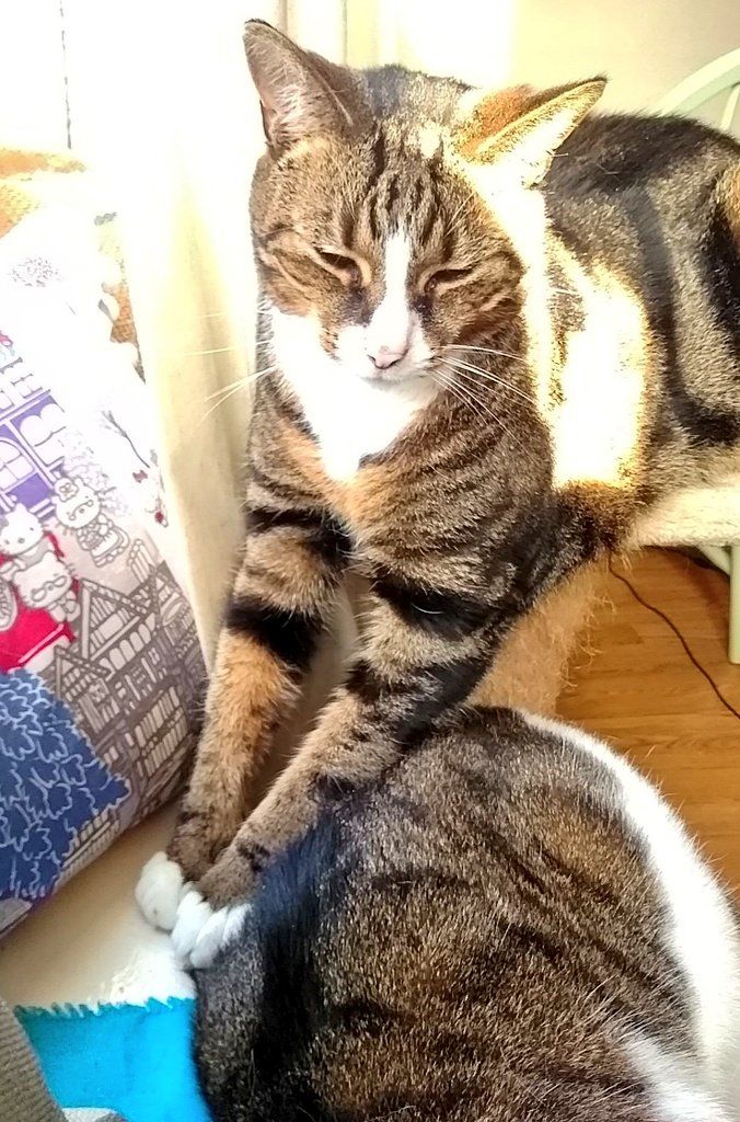 Sunning his legs.