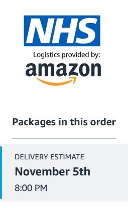 I've had a cough for a few days (feel more or less fine about from that) so I've ordered a COVID-19 test. I wasn't aware that Amazon Logistics had been contracted to deliver NHS COVID tests.