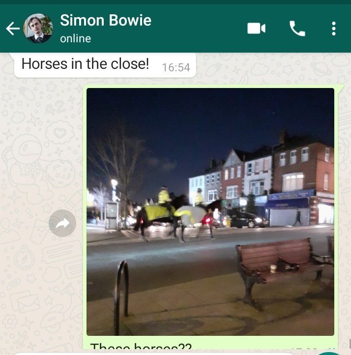 : Inner city living is being excited to see horses, but the horses are actually cops.