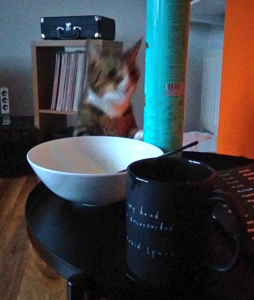 Not content with Christmas lunch, he's now after the leftover butterscotch pudding.