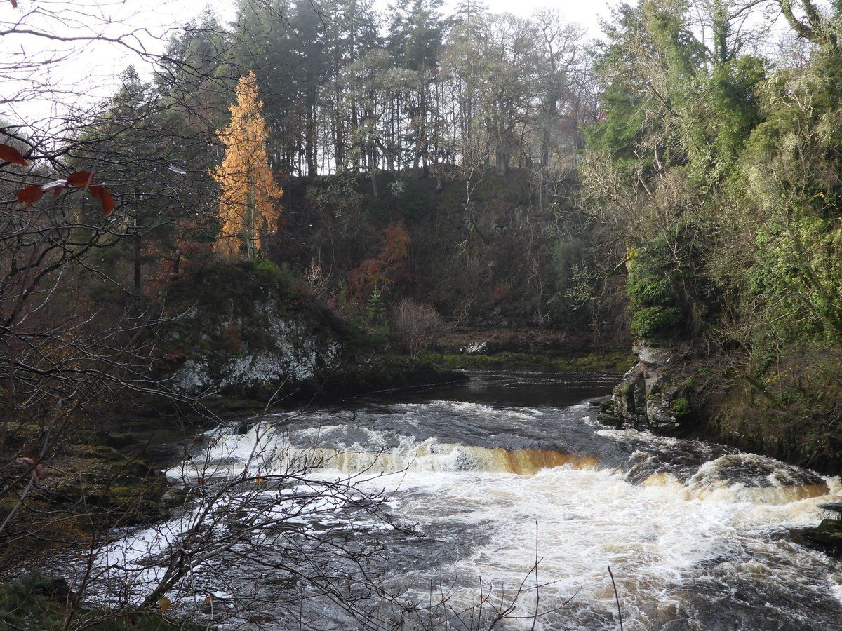 We went on a birthday walk along the spectacularly dramatic Falls of Clyde. To get there, you have to pass through New Lanark, a planned community around a cotton mill and a world heritage site.