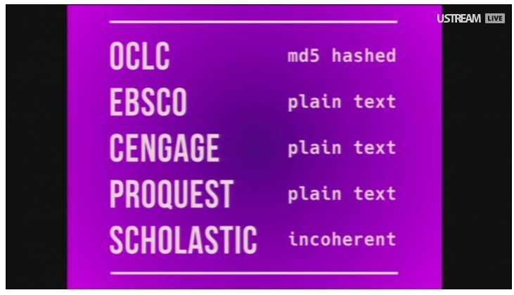 : #LTC2016 library vendors password storing method (eg. bad!)