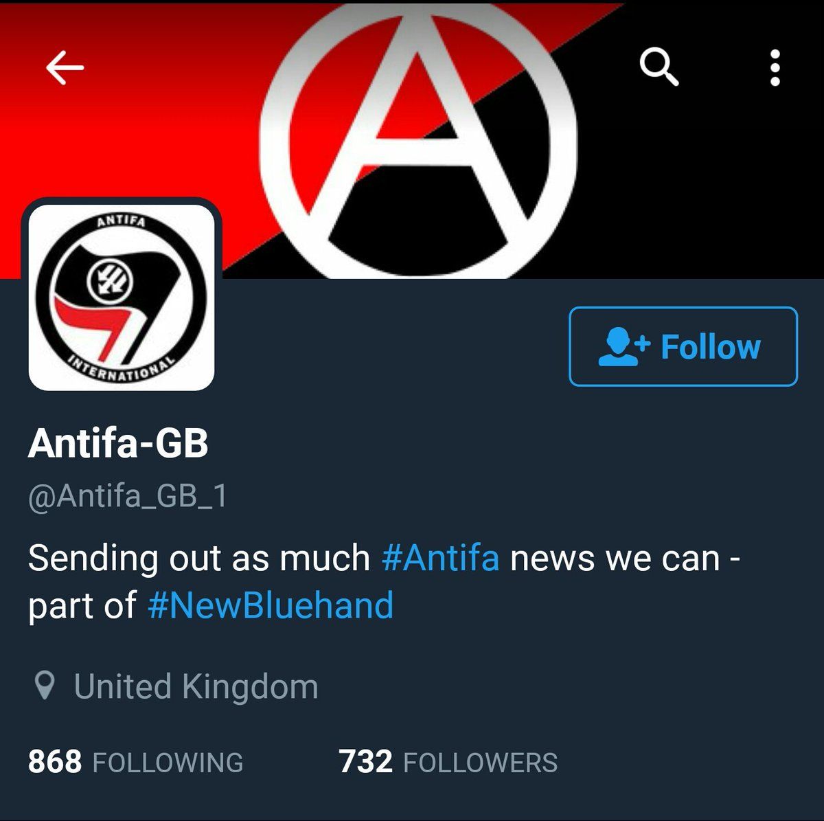 : Seen ppl RT Antifa-GB. It's a fash profile. So's any antifa that refs bluehand
