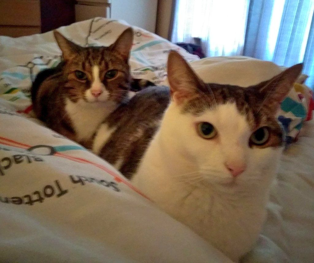 Ozi spent the night with us because a friend slept in the living room. He scratched the door, knocked over my water, and meowed loudly.