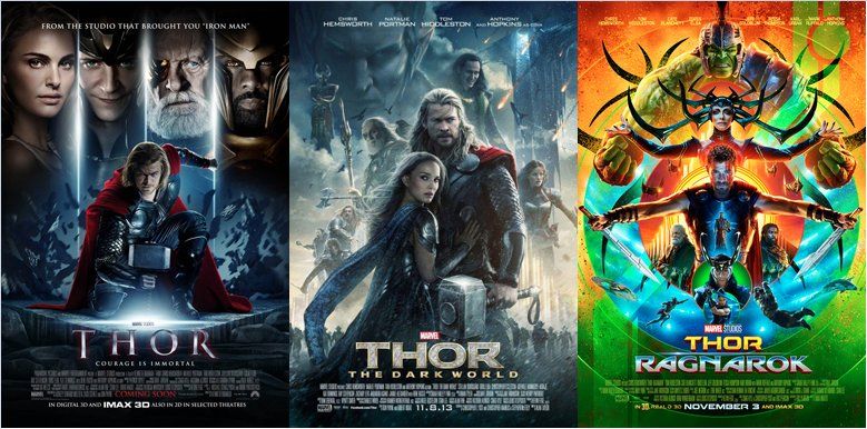 The trajectory of the colour palette for Marvel's marketing of Thor movies is giving me life.
