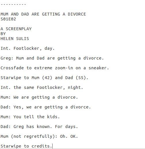 and I have been working hard on our sitcom screenplay. It's coming along nicely.