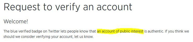 And it's contracted by this sentence on verification.twitter.com/welcome which would seem to imply that verification is an indicator of importance to the public.