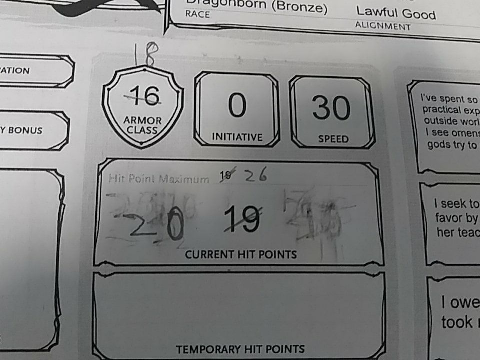 Glad to be levelling up and printing out a new D&D character sheet because my hit point box is an indecipherable mess.