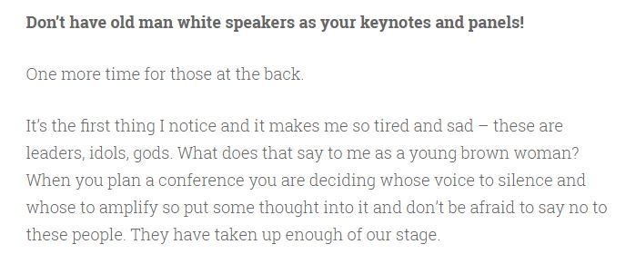: 🌞🌞New blog post klaxon🌞🌞 The unbearable whiteness of conferences